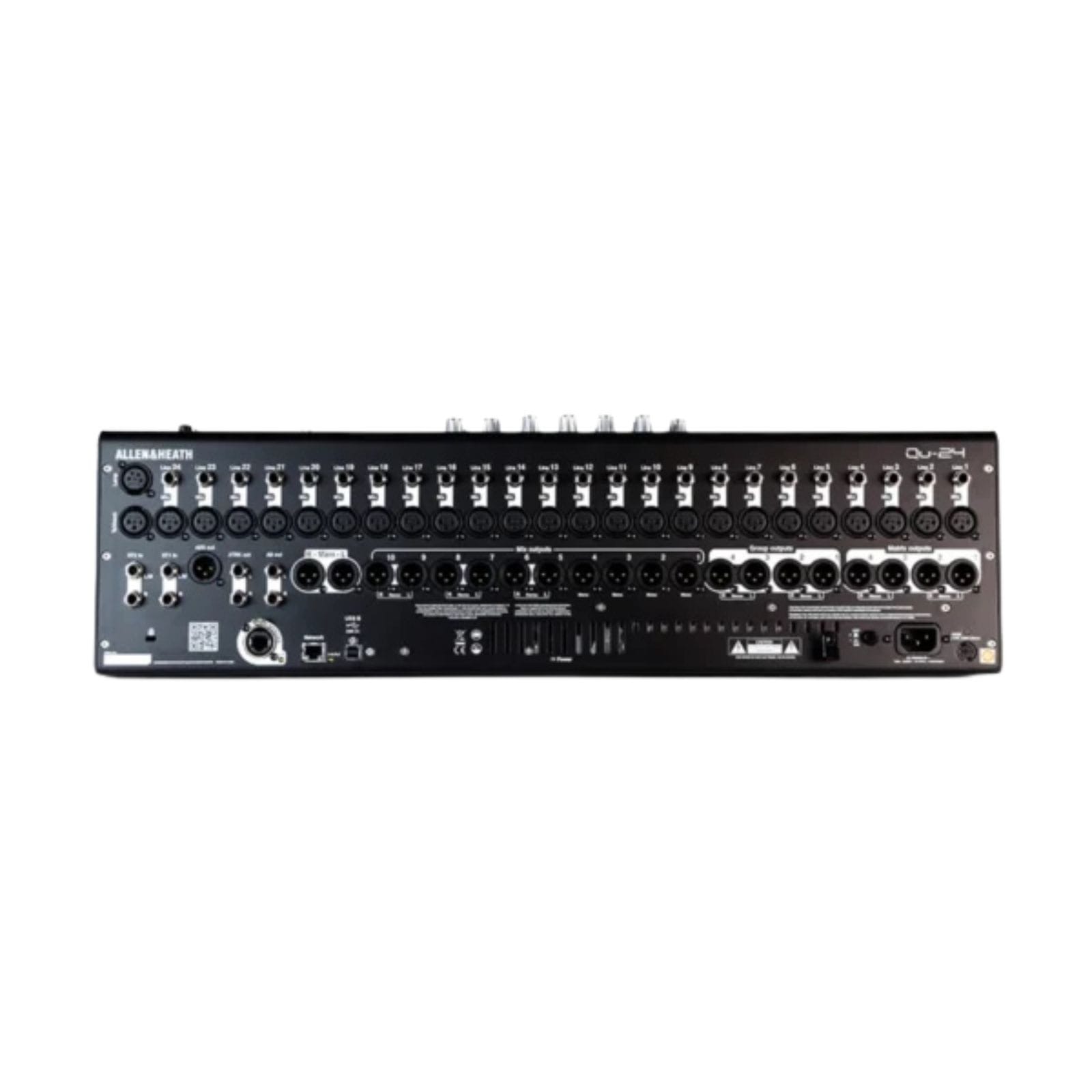 Ubicada entre la Qu-16 y la Qu-32, la Qu-24 ofrece el equilibrio perfecto entre capacidad y portabilidad. Con 24 entradas y 20 salidas, es una consola versátil que se adapta a bandas de tamaño mediano, lugares de música en vivo y teatros. Su diseño optimizado, combinado con una interfaz intuitiva y controles dedicados, permite una operación rápida y eficiente en cualquier entorno.